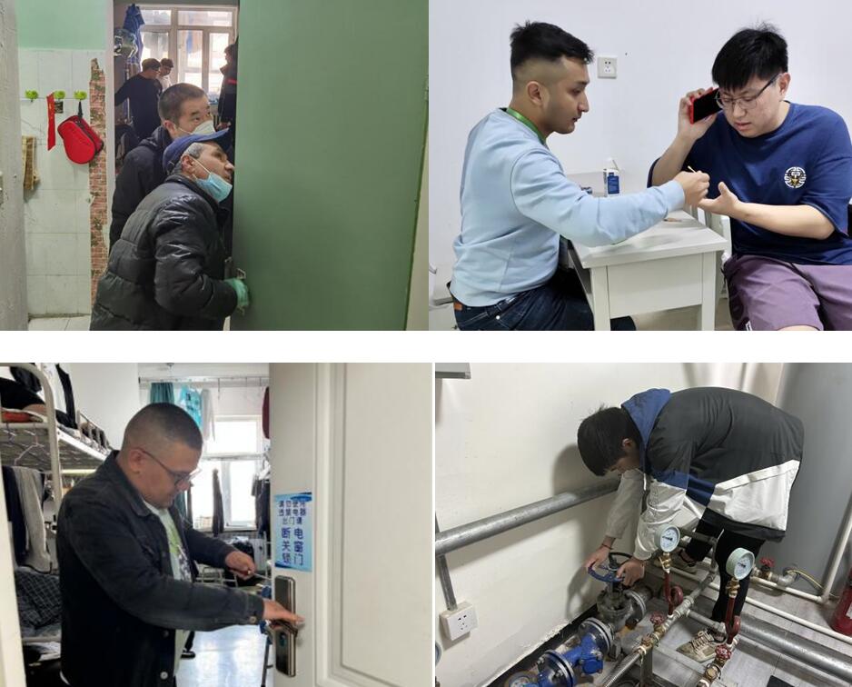 坚守岗位一线,确保服务质效。全体社区辅导员、维修人员、值班员、保洁员等其他岗位人员按照工作轮换安排,坚守岗位一线,扎实做好服务工作,用实际行动践行敬业奉献、无私无闻的劳动者精神,有效确保学生问题快速响应、宿舍报修及时处理、公共卫生环境干净整洁、公共设施设备运行正常,协力构筑起平稳安全有序运转的学生社区。